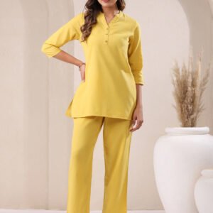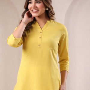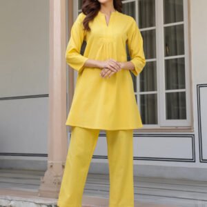Yellow Cotton Solid Straight Kurta