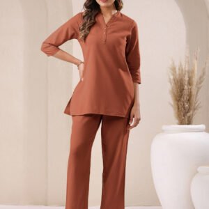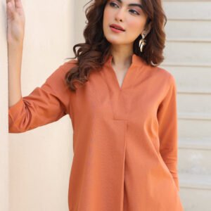 Peach Rayon Solid Straight Kurta