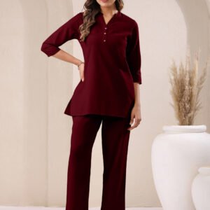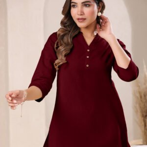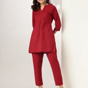 Maroon Cotton Solid Straight Kurta