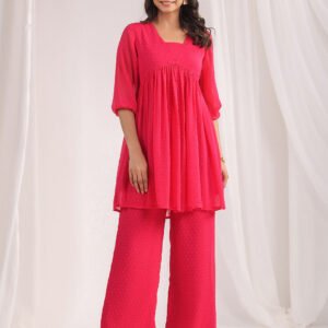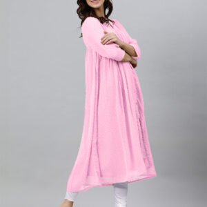 Pink Dobby Chiffon Self Design Flared Kurta
