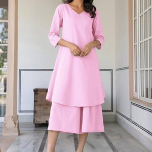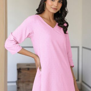 Pink Cotton Solid Straight Kurta
