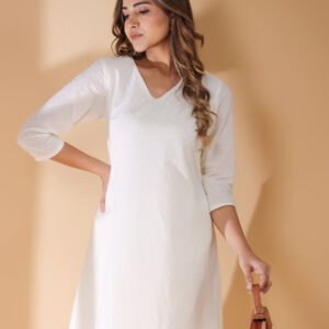 Off White Cotton Solid Straight Kurta