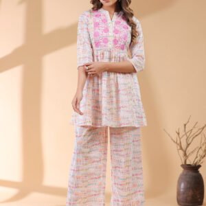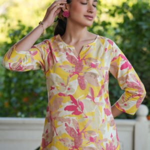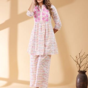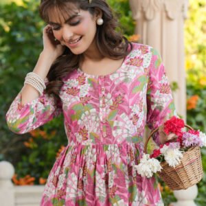Pink Pure Cotton Floral Printed Empire Kurta
