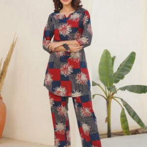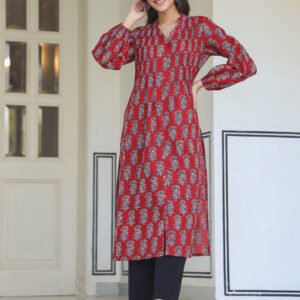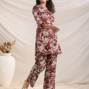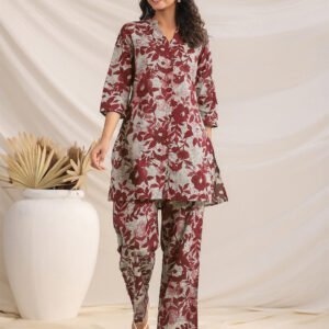 Maroon Cotton Floral Print Flared Kurta