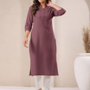 Mauve Cotton Solid Straight Kurta