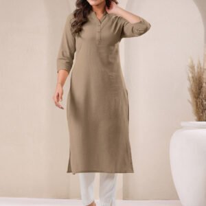 Beige Cotton Solid Straight Kurta