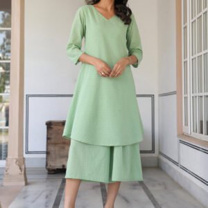 Green Dobby Pure Cotton Self Design A-line Kurta With Cullote Pant Set