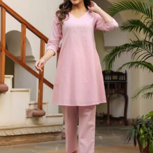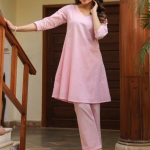Light Pink Dobby Pure Cotton Self Design A-line Co-ord Set
