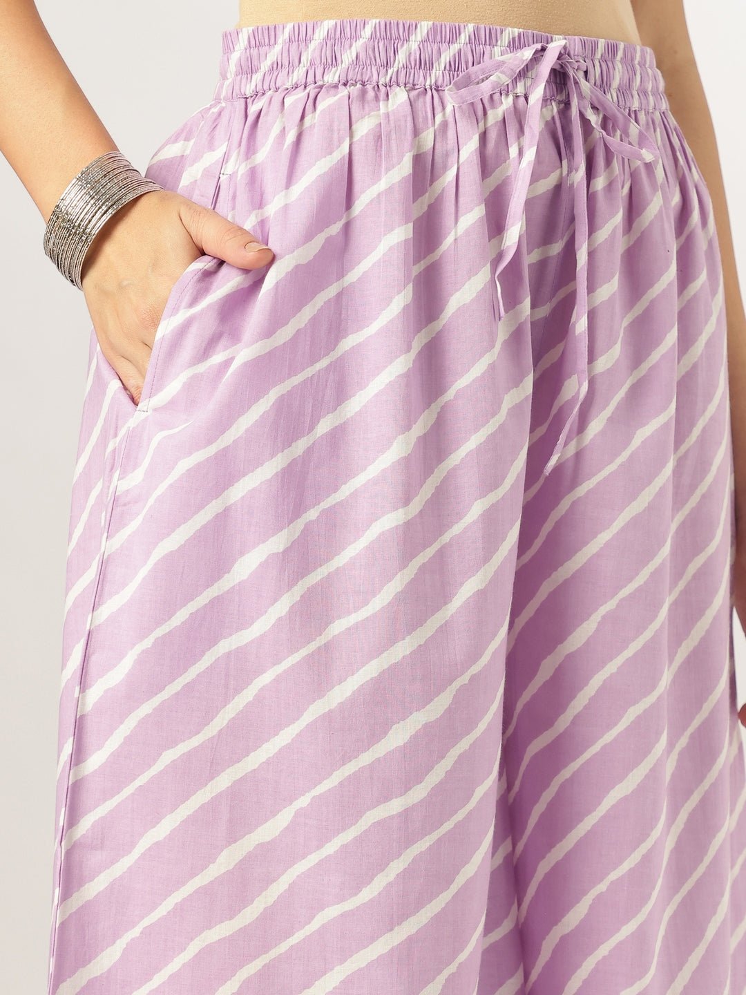 - Kurta Color : White | Palazzo Color : Lavender | Dupatta Color : Lavender
