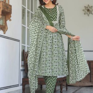 Elegante Seiden-Kurta-Set mit floral bedrucktem Lavendel-Georgette im A-Linien-Stil